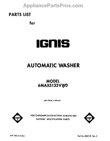 Parts for Whirlpool 6MAX5133VW0: Front Cover Parts