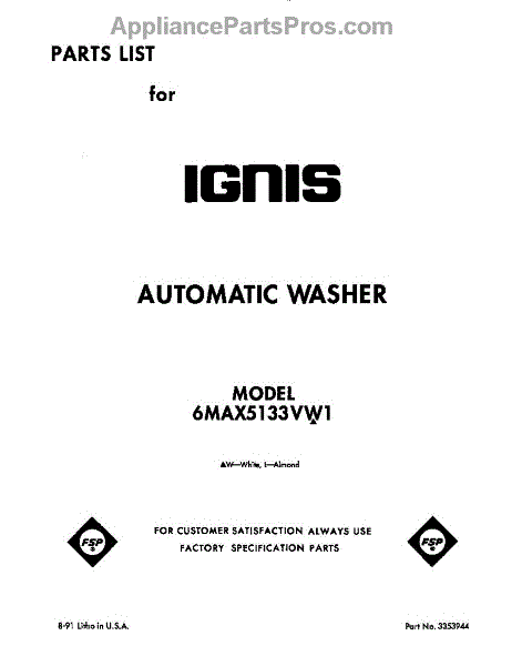 Parts for Whirlpool 6MAX5133VW1: Front Cover Parts