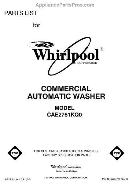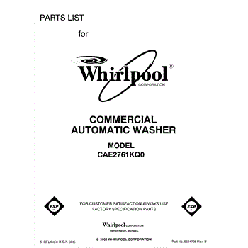 Parts for Whirlpool CAE2761KQ0: 01 - Front Cover Parts