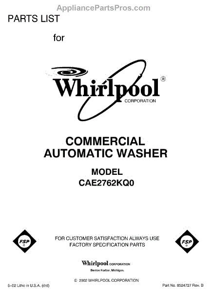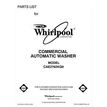 Parts for Whirlpool CAE2762KQ0: 01 - Front Cover Parts