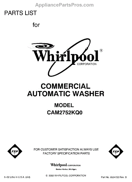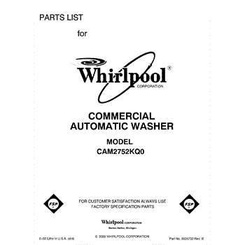 Parts for Whirlpool CAM2752KQ0: 01 - Front Cover Parts