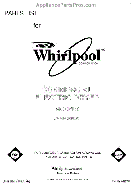 Parts for Whirlpool CEM2760KQ0: 01 - Front Cover Parts