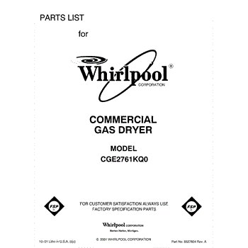 Parts for Whirlpool CGE2761KQ0: 01 - Front Cover Parts