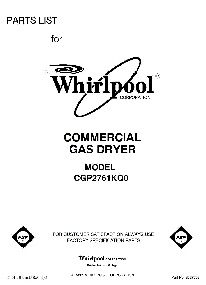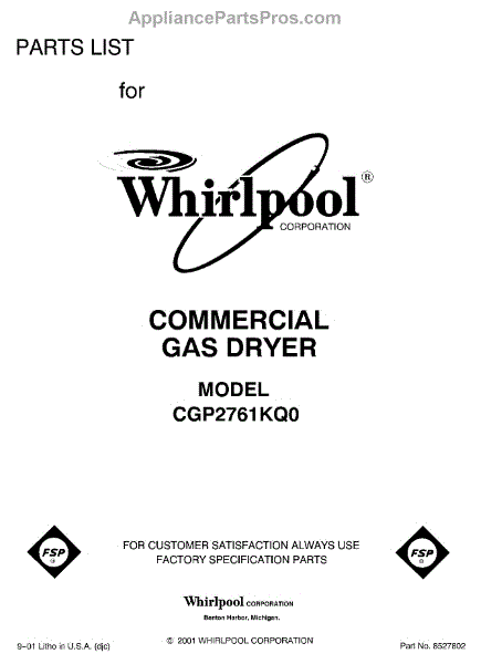 Parts for Whirlpool CGP2761KQ0: 01 - Front Cover Parts