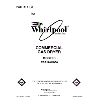 Parts for Whirlpool CSP2741KQ0: 01 - Front Cover Parts