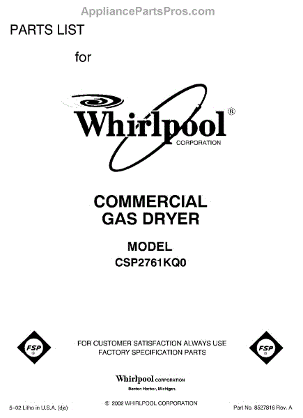 Parts for Whirlpool CSP2761KQ0: 01 - Front Cover Parts