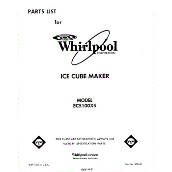 Parts for Whirlpool EC5100XS: 01 - Front Cover Parts