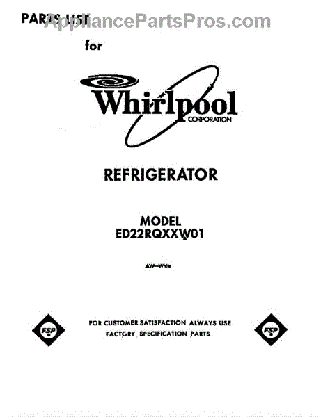 Parts for Whirlpool ED22RQXXN01: Front Cover Parts