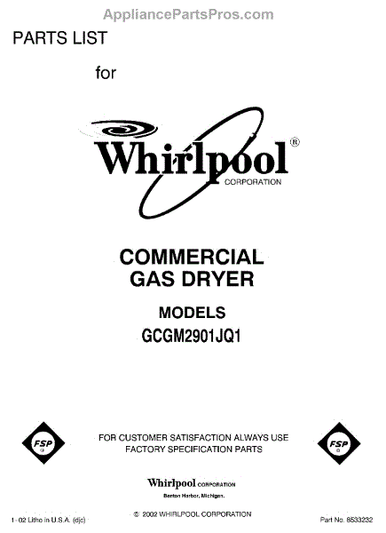 Parts for Whirlpool GCGM2901JQ1: 01 - Front Cover Parts