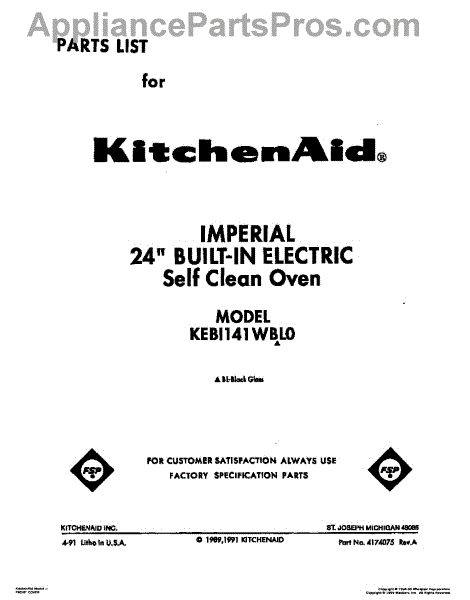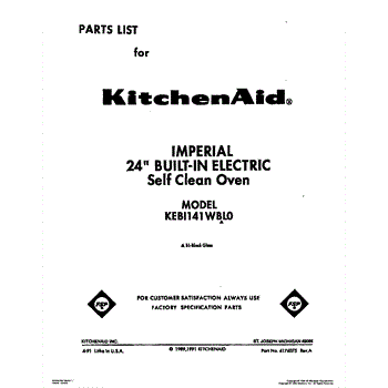 Parts for Kitchenaid KEBI141WBL0: 01 - Front Cover Parts