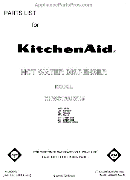 Parts for Kitchenaid KHWS160JBT0: 01 - Front Cover Parts