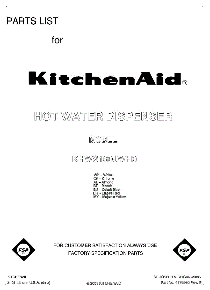 Parts for Kitchenaid KHWS160JER0: 01 - Front Cover Parts
