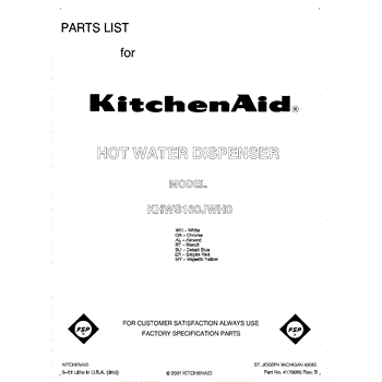 Parts for Kitchenaid KHWS160JMY0: 01 - Front Cover Parts