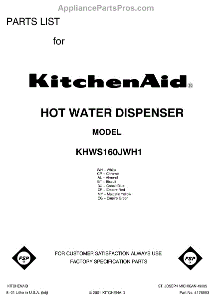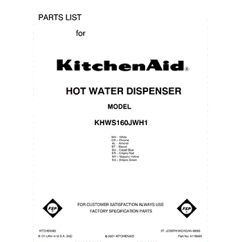 Parts for Kitchenaid KHWS160JWH1: 01 - Front Cover Parts