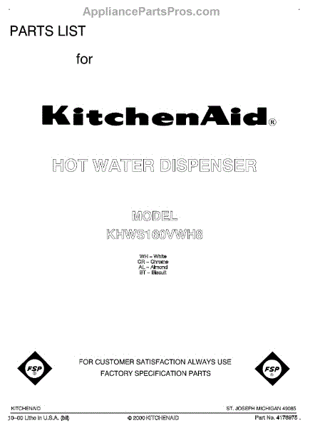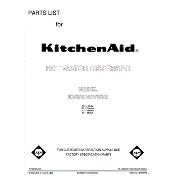 Parts for Kitchenaid KHWS160VAL8: 01 - Front Cover Parts