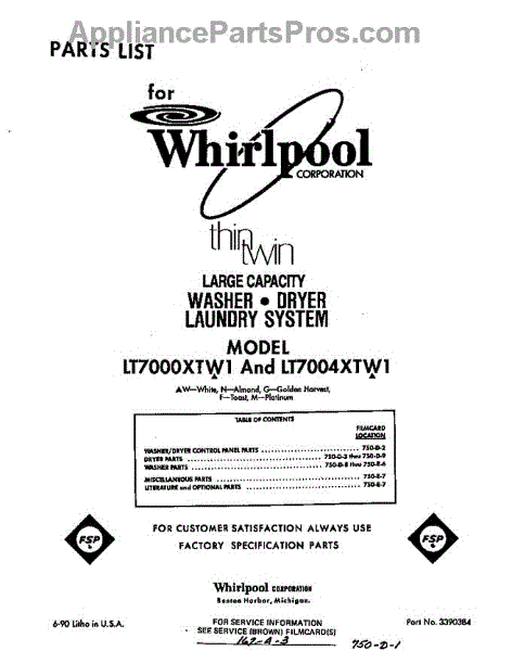 Whirlpool Washer Dryer Combo Parts