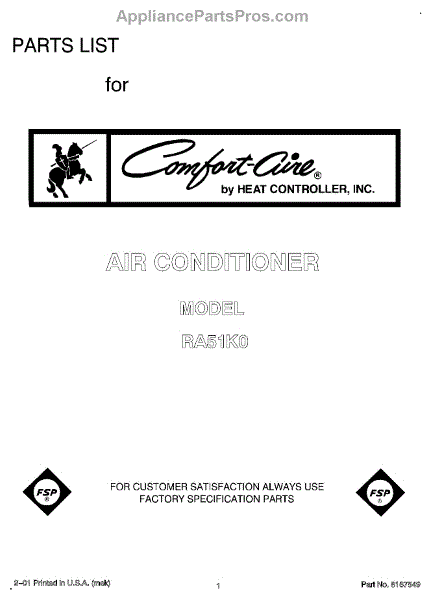 Parts for Whirlpool RA51K0: 01 - Front Cover Parts