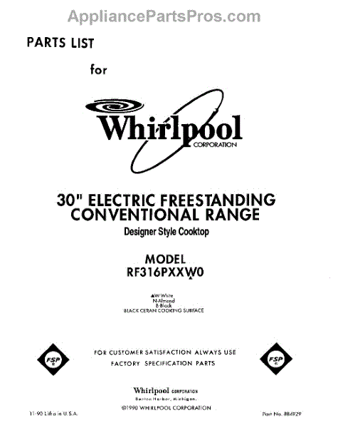 Parts for Whirlpool RF316PXXN0: 01 - Front Cover Parts