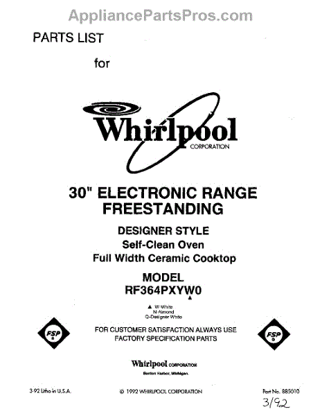 Parts for Whirlpool RF364PXYQ0: 01 - Front Cover Parts