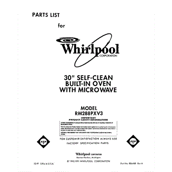 Parts for Whirlpool RM288PXV3: 01 - Front Cover Parts