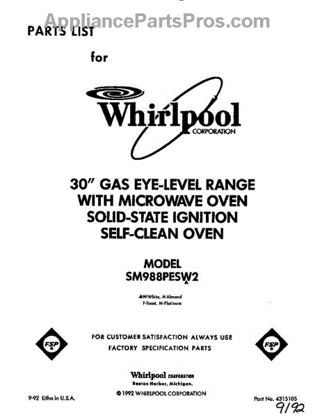 Parts for SM988PESW2