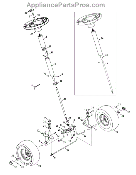 This replacement part is a front axle assembly. It is a genuine replacement part made by MTD. The axle assembly typically assists the wheels in rotating in the proper direction during use so that the user may move the machine in the proper direction. A new axle assembly might be needed if the user notices that the wheels in the appliance are not rotating smoothly or at all. It is possible that after a while the axle parts can become worn down or stripped due to normal wear and tear. If this is the case it is recommended that they be replaced as soon as possible. This axle assembly is sold individually and is sourced directly from the manufacturer. This is also a genuine OEM replacement part. Be sure to purchase the correct amount as many machines require more than one.