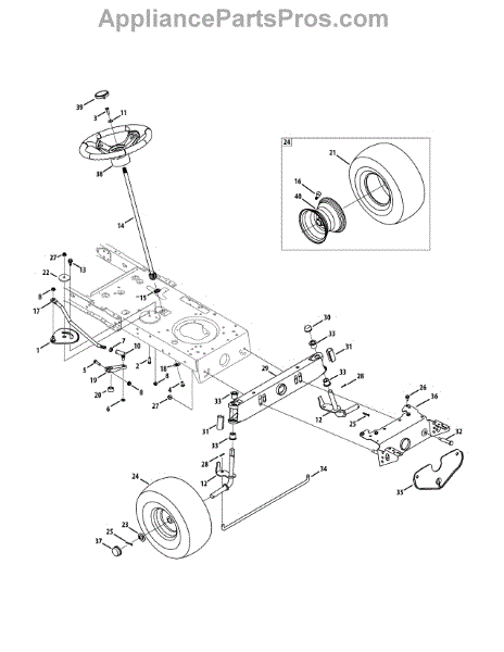 This is a front steering gear assembly that is used in the construction of many models of lawnmowers. It is made of metal and links the drag links with the steering shaft pinion. This creates the ability for the drag links to turn the front wheels when a user turns the steering shaft. The front steering gear is an integral part of the steering assembly and any damage to the component will require replacing it.If the front steering gear assembly is broken or damaged, a replacement will require a socket set. The main symptom of a malfunctioning or faulty gear assembly is the inability to steer the lawnmower. Put the lawnmower on a stable surface and remove the spark plug wire. The steering assembly will need to be removed from the lawnmower to access the front steering gear. Disassemble the tool to reach the gear and remove it from the equipment. Replace with a new part and reassemble other components.This is an authentic OEM replacement component that is directly sourced from the manufacturer. The front steering gear assembly is sold as a single item. It is made for use with lawn mowers manufactured by MasterCut, Craftsman, Yard-Man, Troy-Bilt, Bolens, Murray, Huskee, Yard Machines, and MTD.