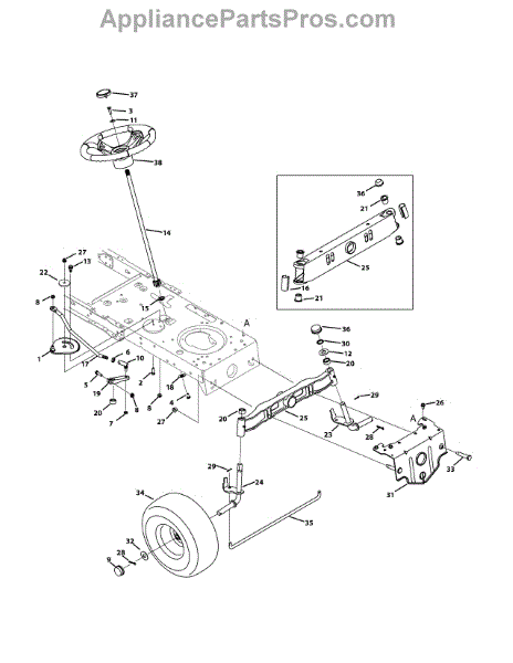 If your lawn tractor steering is popping or feels loose, the steering shaft may be worn or stripped. Connects steering wheel to steering mechanism.