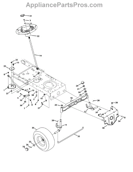 This is a front steering gear assembly that is used in the construction of many models of lawnmowers. It is made of metal and links the drag links with the steering shaft pinion. This creates the ability for the drag links to turn the front wheels when a user turns the steering shaft. The front steering gear is an integral part of the steering assembly and any damage to the component will require replacing it.If the front steering gear assembly is broken or damaged, a replacement will require a socket set. The main symptom of a malfunctioning or faulty gear assembly is the inability to steer the lawnmower. Put the lawnmower on a stable surface and remove the spark plug wire. The steering assembly will need to be removed from the lawnmower to access the front steering gear. Disassemble the tool to reach the gear and remove it from the equipment. Replace with a new part and reassemble other components.This is an authentic OEM replacement component that is directly sourced from the manufacturer. The front steering gear assembly is sold as a single item. It is made for use with lawn mowers manufactured by MasterCut, Craftsman, Yard-Man, Troy-Bilt, Bolens, Murray, Huskee, Yard Machines, and MTD.