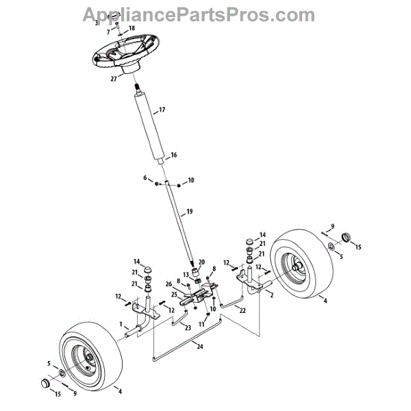 This replacement part is a front axle assembly. It is a genuine replacement part made by MTD. The axle assembly typically assists the wheels in rotating in the proper direction during use so that the user may move the machine in the proper direction. A new axle assembly might be needed if the user notices that the wheels in the appliance are not rotating smoothly or at all. It is possible that after a while the axle parts can become worn down or stripped due to normal wear and tear. If this is the case it is recommended that they be replaced as soon as possible. This axle assembly is sold individually and is sourced directly from the manufacturer. This is also a genuine OEM replacement part. Be sure to purchase the correct amount as many machines require more than one.