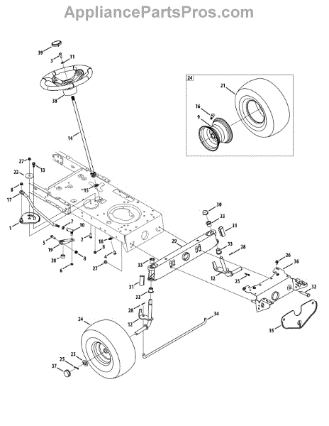This is a front steering gear assembly that is used in the construction of many models of lawnmowers. It is made of metal and links the drag links with the steering shaft pinion. This creates the ability for the drag links to turn the front wheels when a user turns the steering shaft. The front steering gear is an integral part of the steering assembly and any damage to the component will require replacing it.If the front steering gear assembly is broken or damaged, a replacement will require a socket set. The main symptom of a malfunctioning or faulty gear assembly is the inability to steer the lawnmower. Put the lawnmower on a stable surface and remove the spark plug wire. The steering assembly will need to be removed from the lawnmower to access the front steering gear. Disassemble the tool to reach the gear and remove it from the equipment. Replace with a new part and reassemble other components.This is an authentic OEM replacement component that is directly sourced from the manufacturer. The front steering gear assembly is sold as a single item. It is made for use with lawn mowers manufactured by MasterCut, Craftsman, Yard-Man, Troy-Bilt, Bolens, Murray, Huskee, Yard Machines, and MTD.