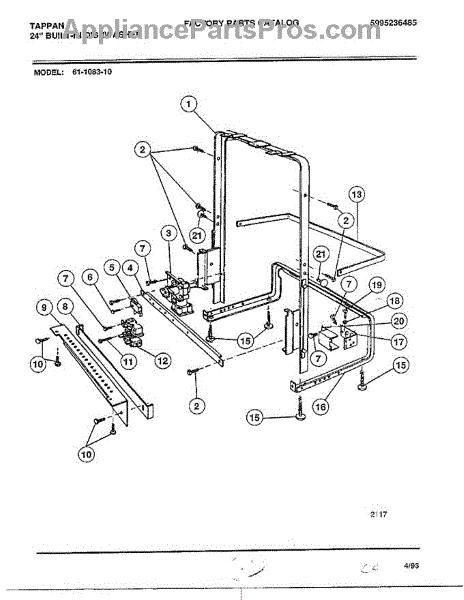 Parts for Frigidaire 61-1083-10: Front Frame Assy Parts
