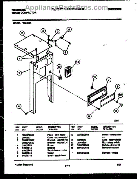 Parts for Frigidaire TCU3D5: 03 - Front Frame And Control Panel Parts