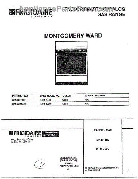 Parts for Frigidaire 2803-80B: Front Page Parts