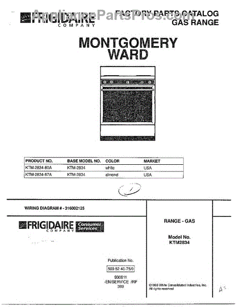 Parts for Frigidaire 2834-80A: Front Page Parts