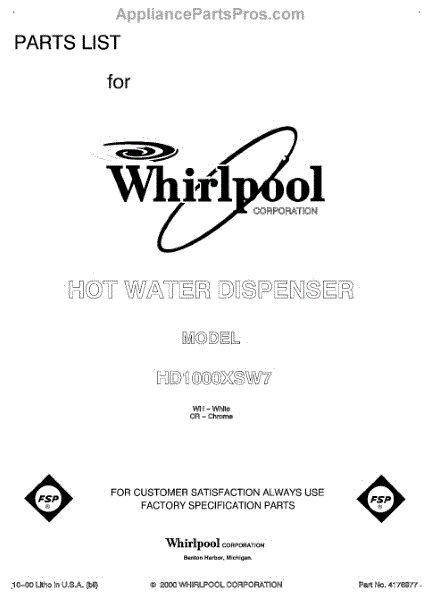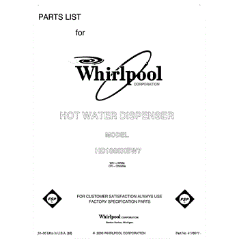 Parts for Whirlpool HD1000XSC7: 01 - Front Page Parts