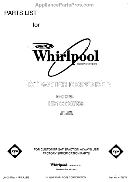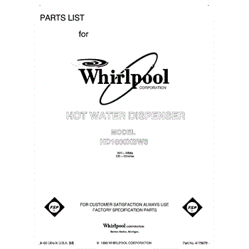 Parts for Whirlpool HD1000XSW6: 01 - Front Page Parts