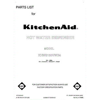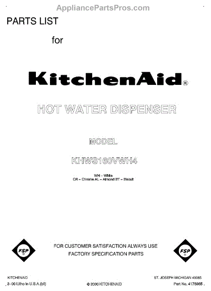 Parts for Kitchenaid KHWS160VWH4: 01 - Front Page Parts