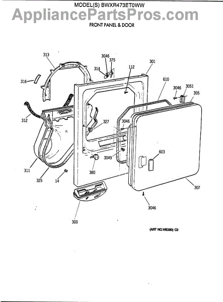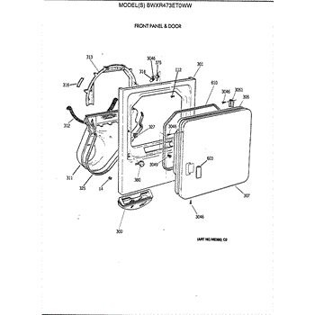 Parts for Ge BWXR473ET0WW: 02 - Front Panel & Door Parts