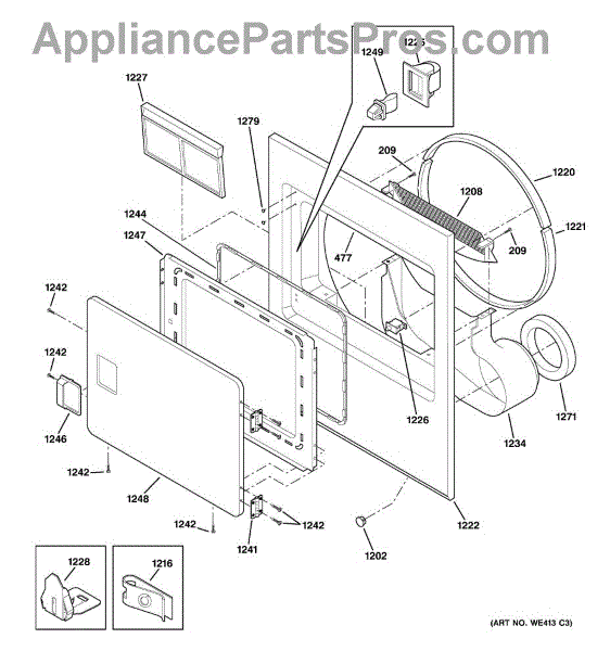The Drum Slide is an OEM replacement part for GE clothes dryers. It supports the front of the dryer drum, allowing it to rotate smoothly and quietly. Made of durable materials, this component reduces friction as the drum spins, ensuring that the appliance operates with minimal noise and wear. Causes for a malfunctioning Drum Slide can include wear and tear from the constant rotation of the drum, accumulation of lint or debris causing friction, or damage due to overloading the dryer may also disrupt slide movement quality over time. Symptoms of a faulty drum slide include: