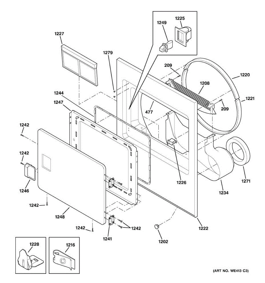 The Drum Slide is an OEM replacement part for GE clothes dryers. It supports the front of the dryer drum, allowing it to rotate smoothly and quietly. Made of durable materials, this component reduces friction as the drum spins, ensuring that the appliance operates with minimal noise and wear. Causes for a malfunctioning Drum Slide can include wear and tear from the constant rotation of the drum, accumulation of lint or debris causing friction, or damage due to overloading the dryer may also disrupt slide movement quality over time. Symptoms of a faulty drum slide include: