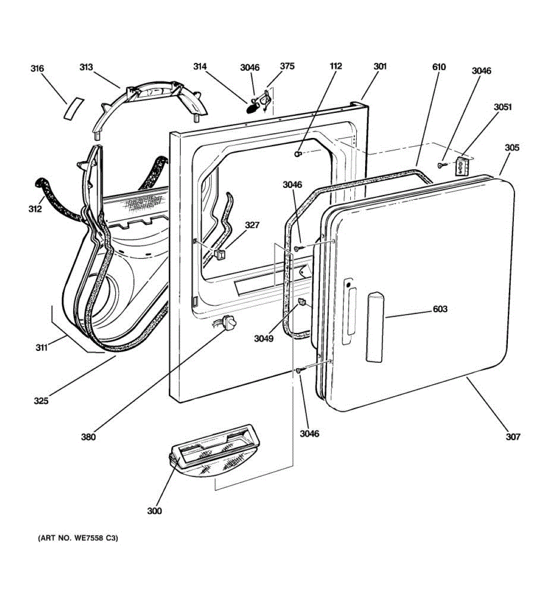 Inner door assembly for your dryer. Installs on the front panel to complete the door frame. Replace if cracked, broken, or damaged from wear.