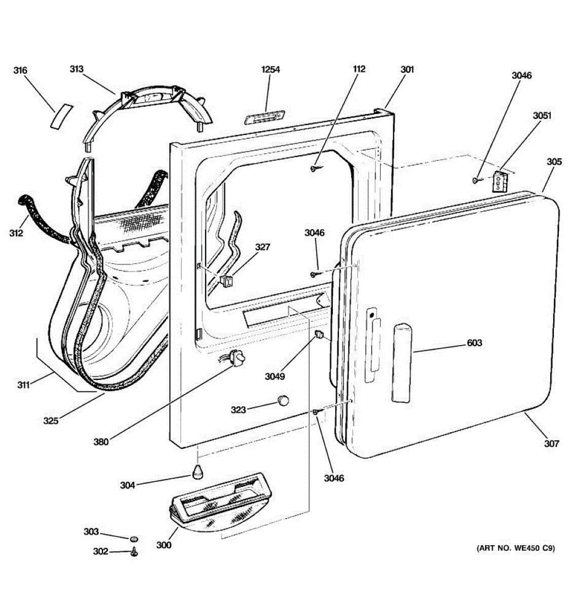 Seals the gap between the drum and front panel to prevent air leaks and noise. Replace if worn, damaged, or causing squeaking sounds. Verify fit with your model.