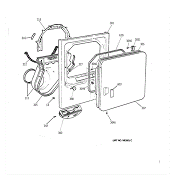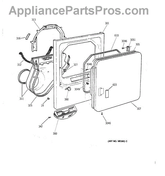 The Handle Door is an OEM part for GE dryers. This door handle allows for easy opening and closing of the dryer door, providing a secure grip to access the drum.