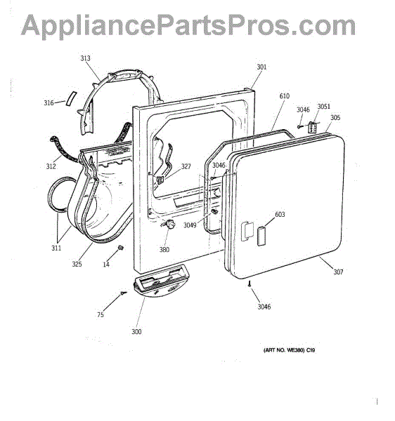 The Handle Door is an OEM part for GE dryers. This door handle allows for easy opening and closing of the dryer door, providing a secure grip to access the drum.