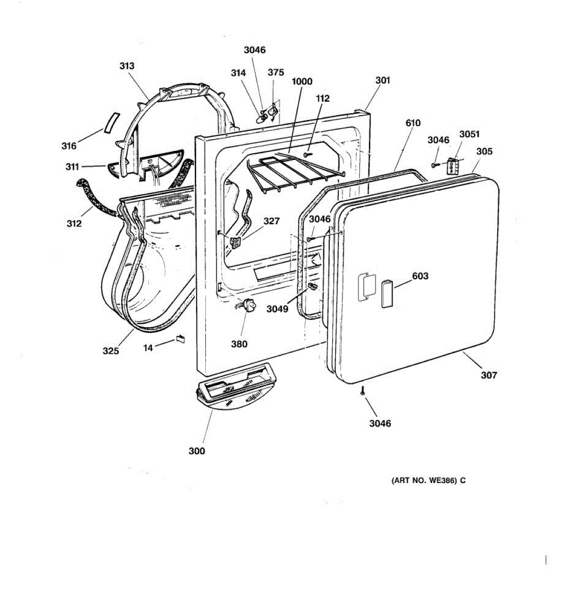 Parts for Ge DDSR475ET3WW: 02 - Front Panel & Door Parts