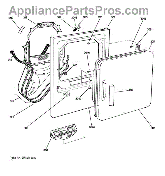 Parts for Ge DLSR483EE1CC: 02 - Front Panel & Door Parts
