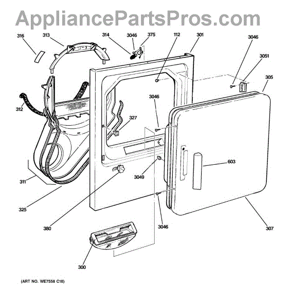 Parts for Ge DLSR483EE2WW: 02 - Front Panel & Door Parts
