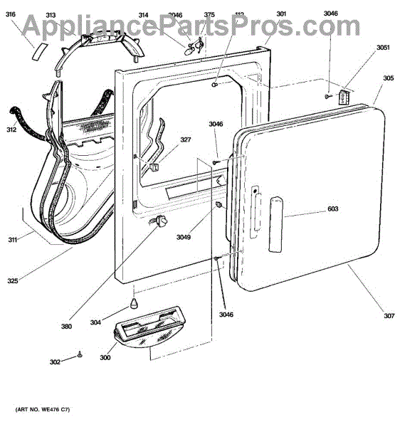 Parts for Ge DLSR483GG2WW: 02 - Front Panel & Door Parts