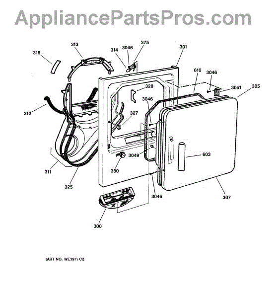 Parts for Ge DNXR473GW0WW: 02 - Front Panel & Door Parts